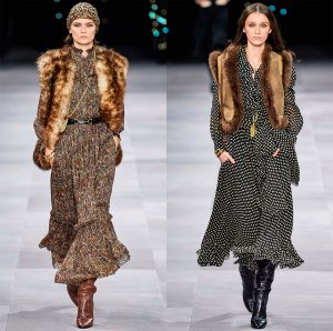 Le look sera joli et gracieux si vous ajoutez un gilet de fourrure court à une robe légère. Des propositions originales ont été démontrées par la marque Etro, où un gilet de style ethnique orne également la robe.