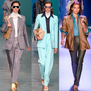 Costumes de style affaires. Il y a un costume d'affaires dans presque toutes les collections printemps-été. Et ses concepteurs proposent non seulement un look classique, mais aussi des options de cuir originales, avec l'ajout d'une chemise en jean. L'une des meilleures marques de la collection dont les costumes sont présentés dans toutes les variétés est Burberry.