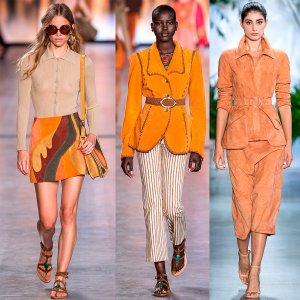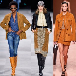 Dans la nouvelle saison, les vestes, jupes, pantalons et autres produits en daim nous rappelleront les années 70 du siècle dernier. Et cela a été présenté avec succès dans la nouvelle collection Céline du designer Edi Slimane. Hermès a présenté de nombreux looks en daim.