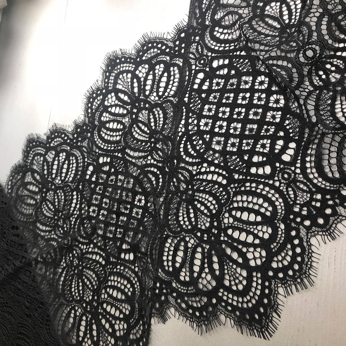 La dentelle de Chantilly française ("Chantilly" en français - "Chantilly") est la plus fine des dentelles aérées. On l'appelle souvent dentelle aérienne car elle est si fine et délicate et est utilisée pour des vêtements élégants en tant que matériau ou décoration de produits.