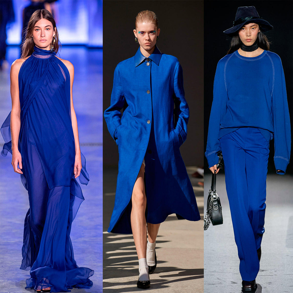 Nous avons déjà parlé du bleu classique comme de la couleur la plus importante de l'année. Cette couleur a fière allure dans les tissus de n'importe quelle texture - du brillant étincelant aux nuages en mousseline délicats. Nous avons aussi différentes associations avec lui, par exemple, pour certains c'est la stabilité et la fiabilité ou la paix et l'harmonie, pour d'autres ce sont des réflexions sur l'éternité.