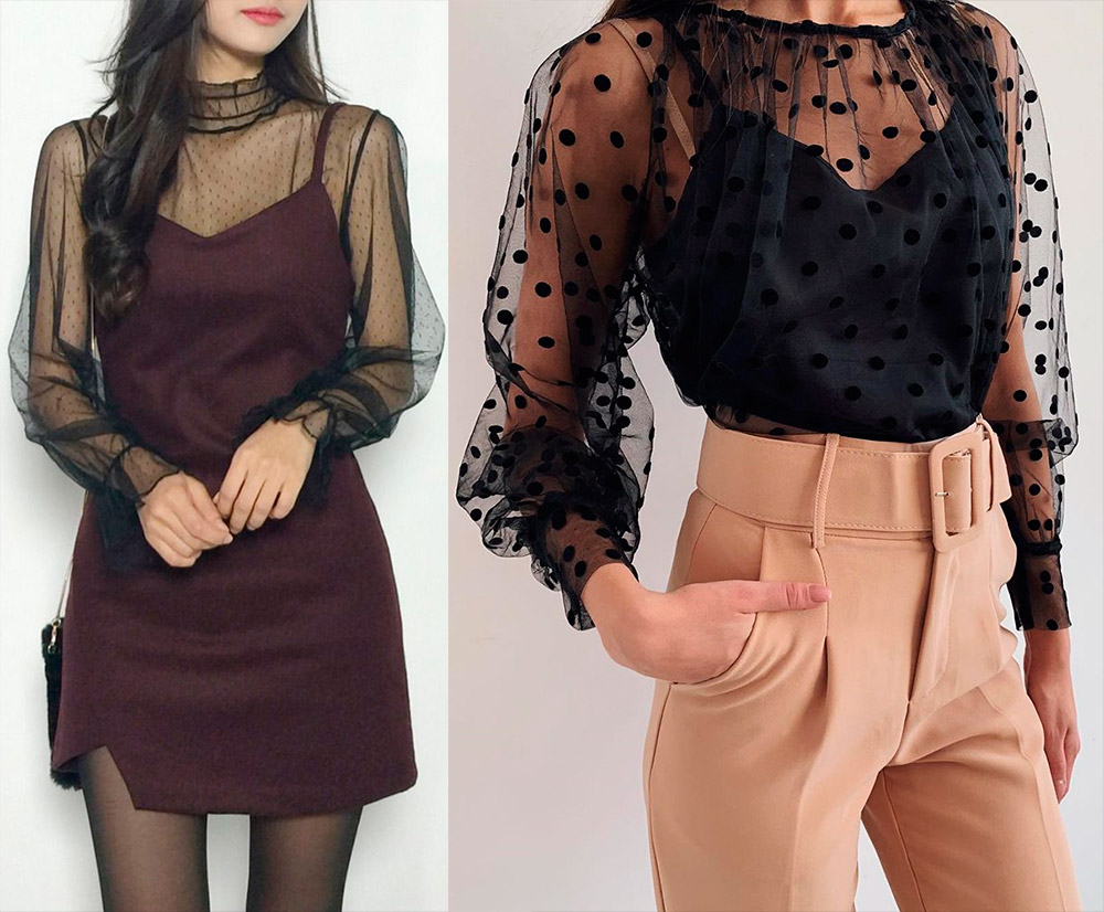 Une belle tendance féminine qu'il est important de présenter correctement. Un chemisier ou un haut transparent peut être porté comme première couche, comme dans le paragraphe précédent. Ou portez un sous-vêtement laconique approprié ou un haut à bretelles de couleur, l'image deviendra alors plus nette.