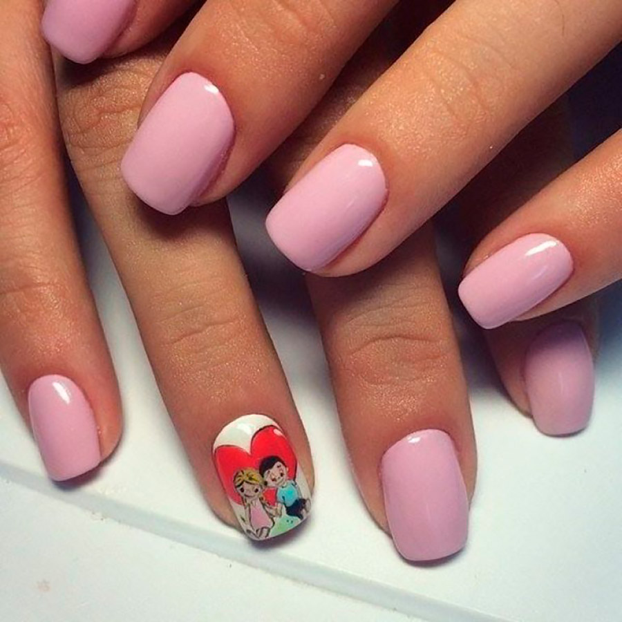 Cette option est également très populaire. N'ayez pas peur d'avoir l'air enfantin, car quand, sinon le jour de la Saint-Valentin, pouvez-vous dessiner des cœurs sur vos ongles ou écrire une déclaration d'amour ? Les impressions peuvent être estampées, peintes au pinceau, mises en évidence avec des couleurs contrastées, des étincelles, des strass ou du papier d'aluminium - il y a plus qu'assez d'options.