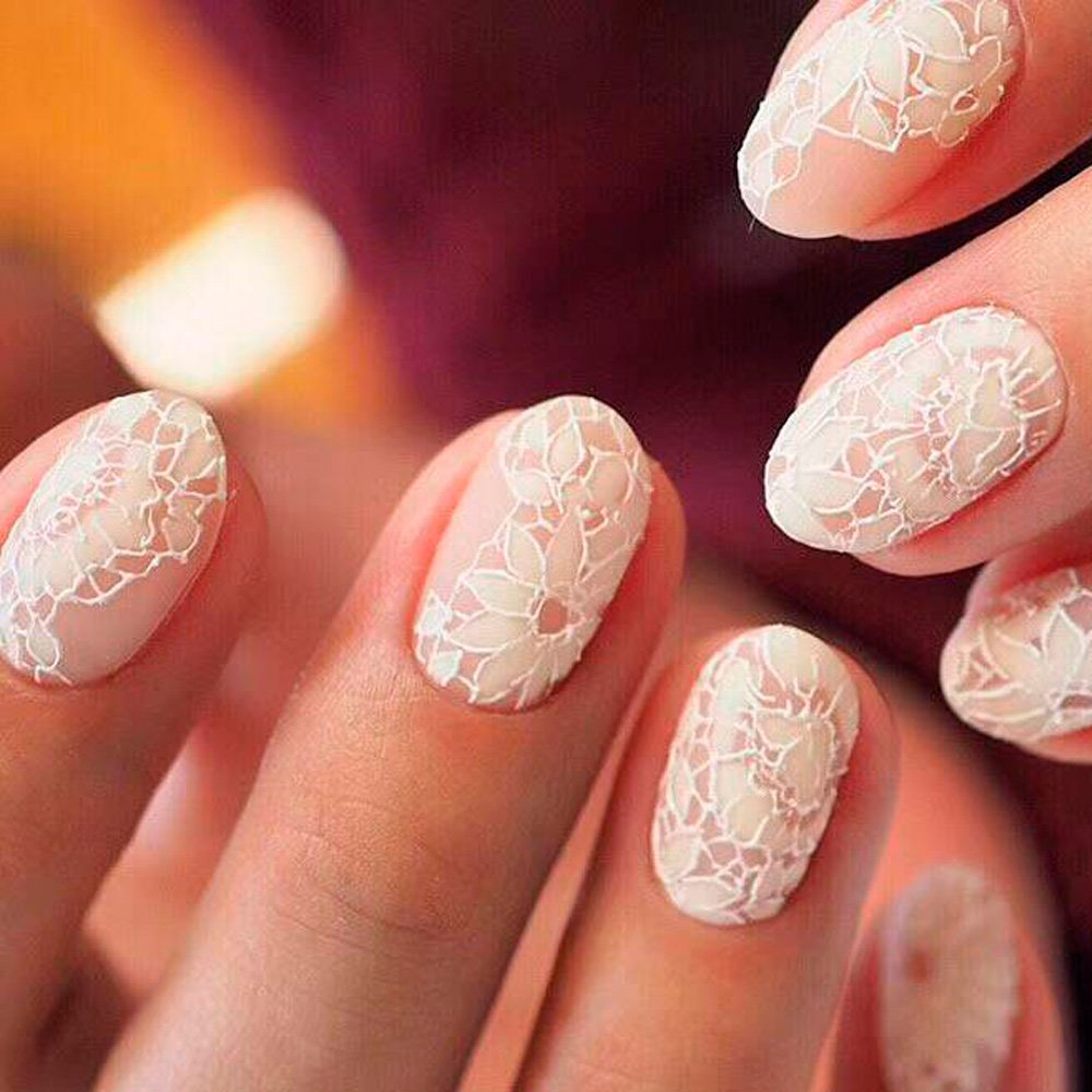 Pourquoi de la dentelle ? Tout d'abord, c'est beau et romantique. Deuxièmement, un homme l'aimera certainement : rien de provocant, très soigné et élégant. Eh bien, troisièmement, les rendez-vous réussis ont tendance à se terminer dans la chambre. Ici, vous pouvez montrer non seulement de la belle lingerie en dentelle, qui, nous en sommes sûrs, a été approvisionnée à l'avance pour la Saint-Valentin, mais aussi une manucure en dentelle qui correspond à cette lingerie.