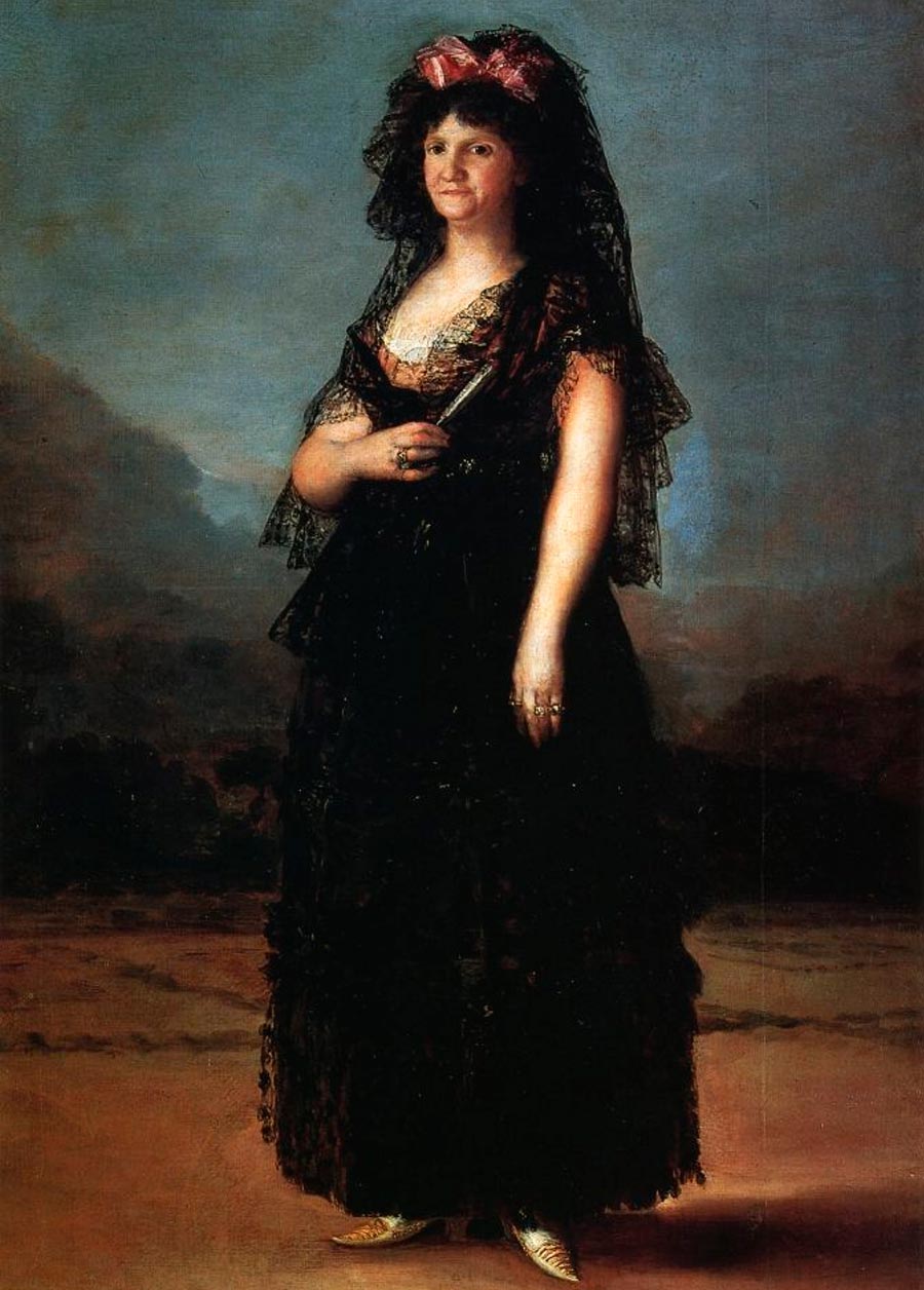 Cependant, au 19ème siècle, on s'attendait à ce que la Mantilla ait encore plus de succès. La reine Isabelle II d'Espagne (1833-1868) aimait beaucoup la mantille et la portait souvent. Les dames de la cour ont rapidement réagi à l'accessoire de mode et la mantille est entrée dans le costume traditionnel des femmes espagnoles. De nombreux artistes ont laissé des portraits féminins en mantille à leurs descendants. Dans de magnifiques capes de dentelle, on peut voir des femmes de toutes les classes dans les portraits des XVIIIe - XIXe siècles. L'artiste espagnol Francisco Goya.