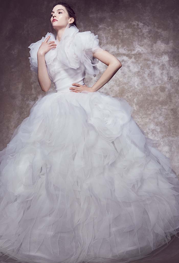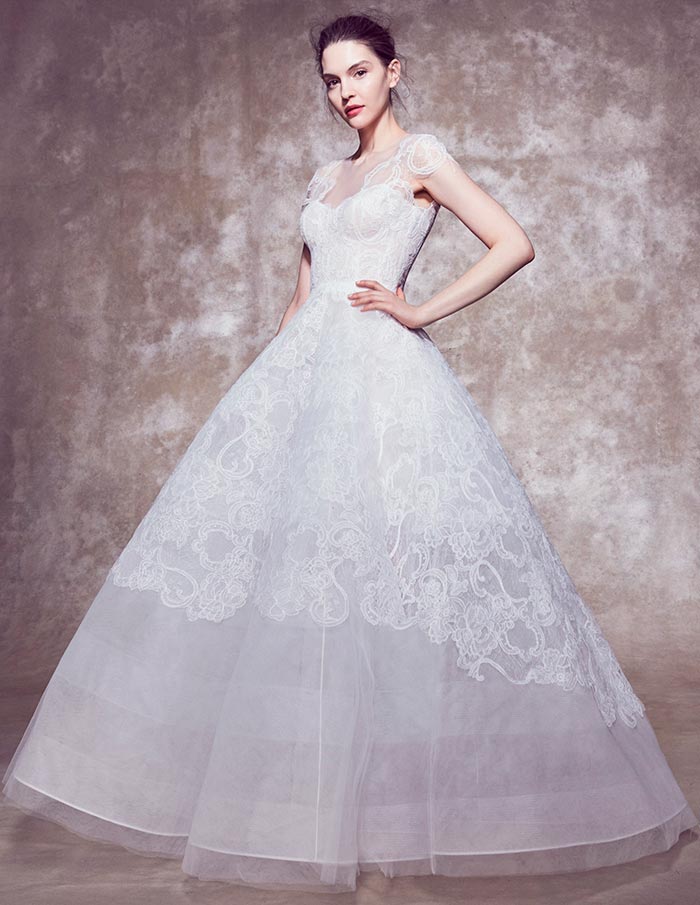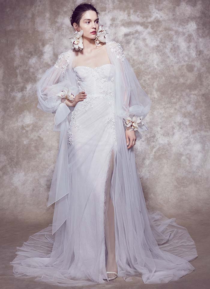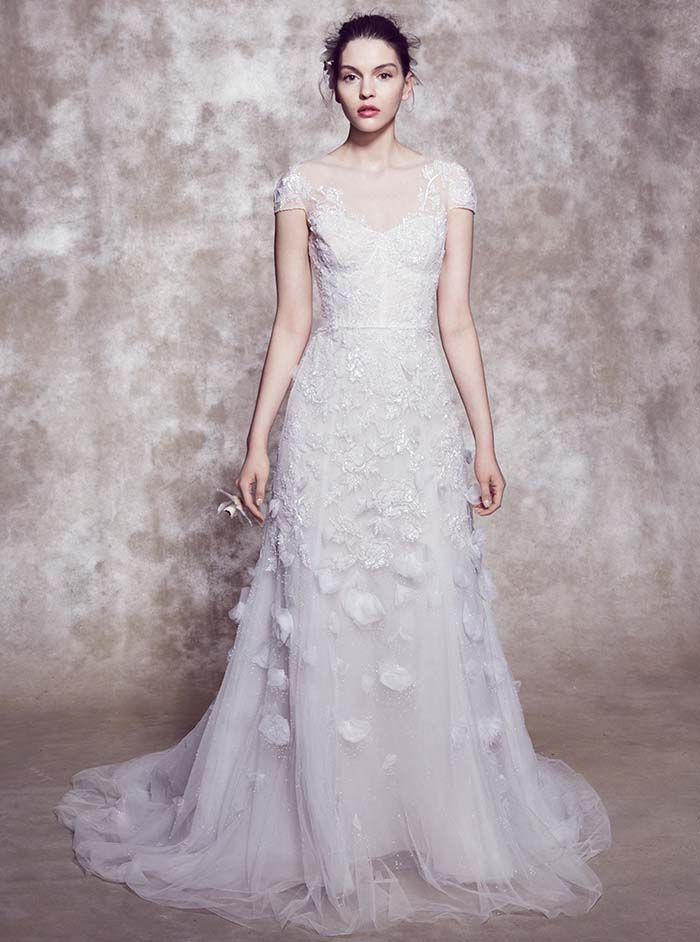 - En plus des robes elles-mêmes, vous pouvez acheter des éléments individuels chez Marchesa, et ce n'est pas seulement un voile chic avec une broderie exquise qui transformera la mariée en une nymphe fantastique. Vous pouvez compléter la robe avec des manches qui ouvrent les épaules, des volants supplémentaires et d'autres éléments. Marchesa invite les mariées à créer le look de mariage parfait afin qu'elles puissent montrer leur meilleur.