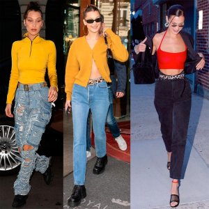 Gigi et Bella adorent les jeans. Larges et skinny, serrés et évasés, déchirés et effilochés, clairs et foncés, clairs et serrés - les jeans sont définitivement un favori des sœurs Hadid pour un style décontracté. Ils combinent des jeans avec des hauts et des t-shirts, avec des pulls et des sweat-shirts, avec des chemises et des vestes, avec des cardigans doux et des vestes en cuir. Voici quelques-unes des options de Gigi et Bella pour porter un jean au quotidien.