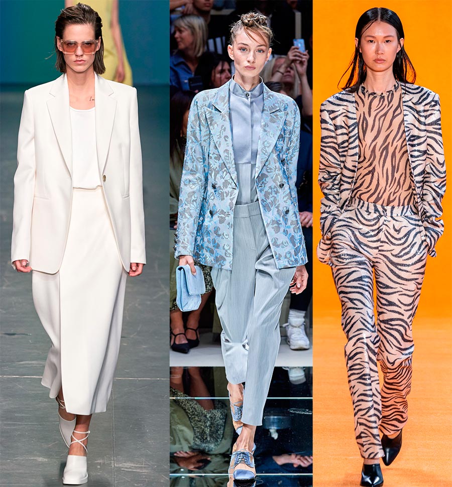 Comme vous pouvez le voir, cette saison, de nombreux créateurs ont repensé l'objectif du costume et l'ont présenté dans une ambiance complètement décalée. Sur le podium, on pouvait voir des idées audacieuses et des solutions non standard - avec des mini-jupes et des mini-shorts, avec des soutiens-gorge au lieu de chemisiers et des fentes hautes sur les jupes, un costume pour un corps nu, avec une palette lumineuse et