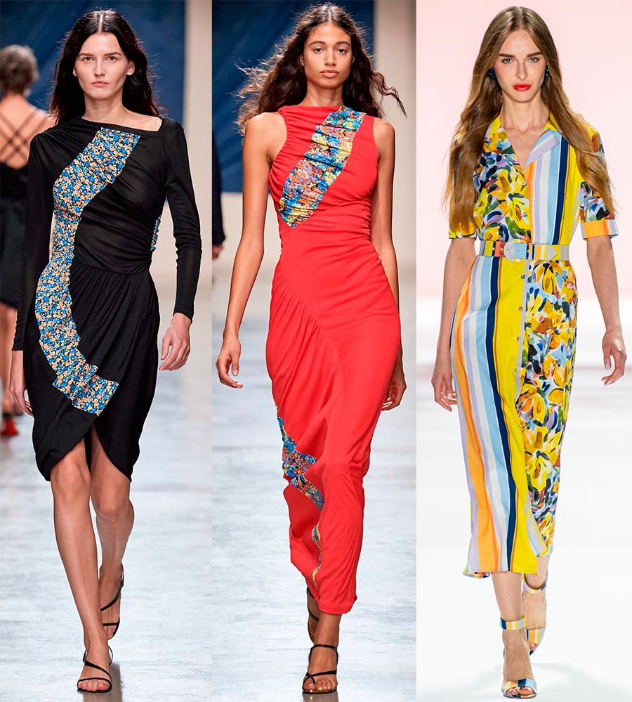 Parfois, les designers combinent des imprimés floraux entre eux. Par exemple, une jupe et un chemisier, un pantalon et un haut. Il reste à ajouter des collants et des chaussures brillants à l'ensemble. Vous pouvez expérimenter avec des bijoux. À notre avis, les images d'Atlein, qui combinent un imprimé floral avec un tissu uni, ou l'image de Badgley Mischka, où les fleurs se sont liées avec une bande, peuvent être qualifiées d'intéressantes.