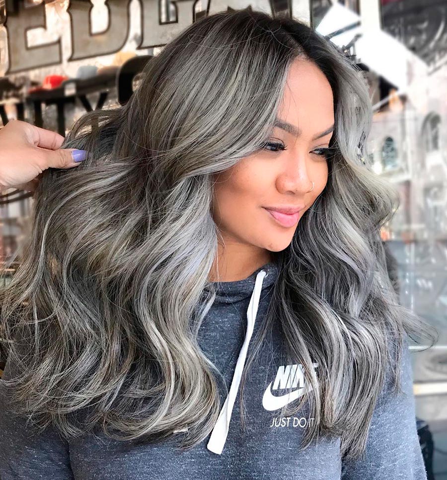 Pour compléter le thème blond, voici une autre couleur populaire pour 2026. Il est blond fumé ou cendré, avec une teinte grise froide prononcée. Cette couleur grise a fière allure sur toutes les peaux, même les plus claires et les plus pâles. C'est un gros plus, car, à titre de comparaison, le blond fraise foncera encore plus la peau foncée, et la lavande rendra encore plus pâle la peau très claire. Mais la couleur fumée convient aussi bien aux brunes qu'aux blondes, et même aux filles aux cheveux roux et aux taches de rousseur naturellement.