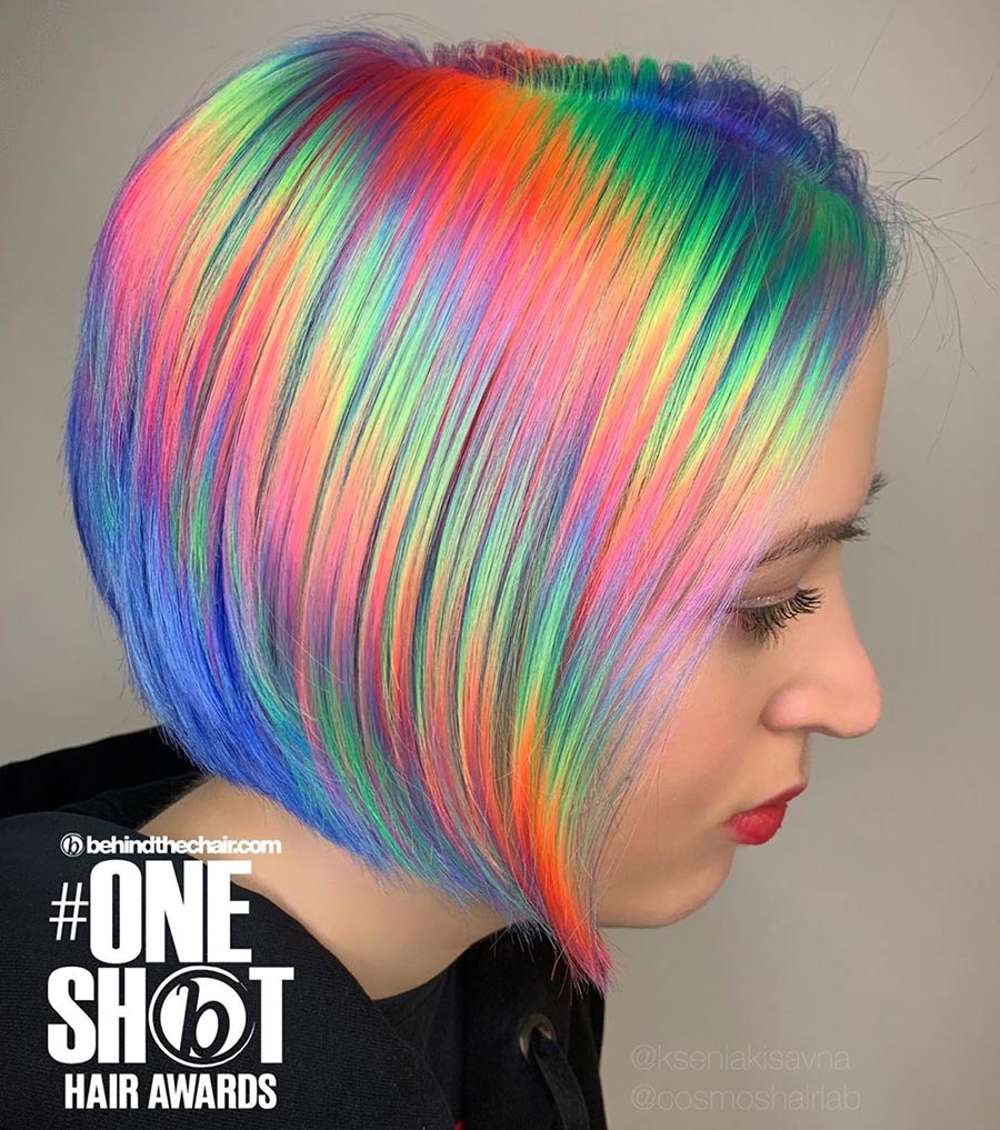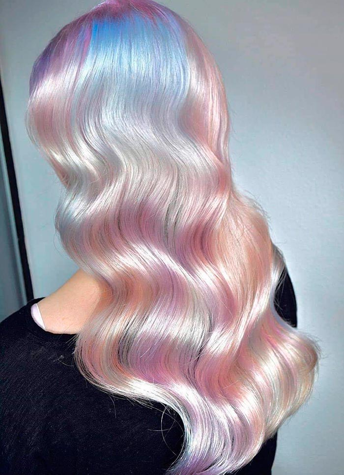Effet opale reste à la mode. Et la coloration arc-en-ciel gagne également en popularité.De telles couleurs peuvent créer une image surnaturelle très futuriste, mais seule une artisane habile peut les rendre vraiment belles et élégantes, sinon vous pouvez obtenir la couleur d'une fille informelle bon marché - une écolière qui a été peinte par un ami.
