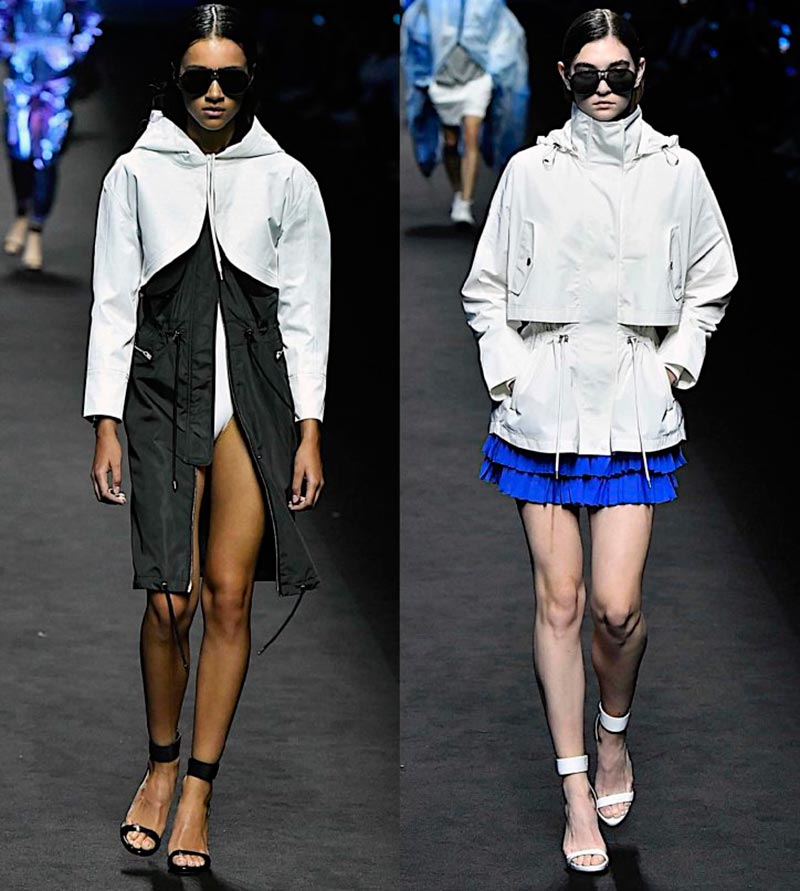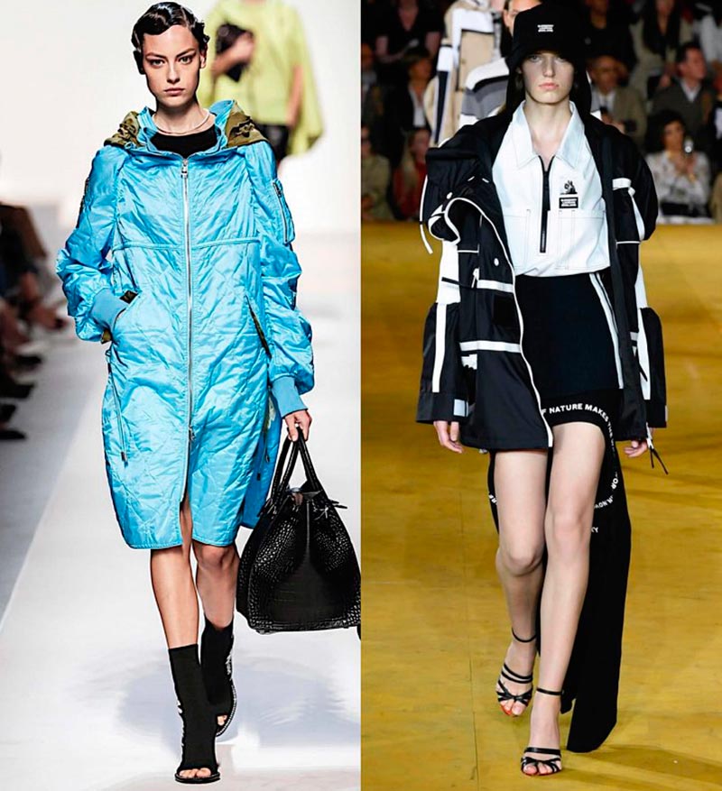 Le reste du parc est resté un parc : un cordon de serrage à la taille et en bas du produit, la présence d'une capuche, des poches spacieuses, des rayures et des bretelles. Les parkas printemps/été ont également des fermetures de manches afin qu'elles puissent être raccourcies. Belles, légères et très féminines : Belstaff, Burberry, Frame Denim, Dsquared2, Fila, Ermanno Scervino.