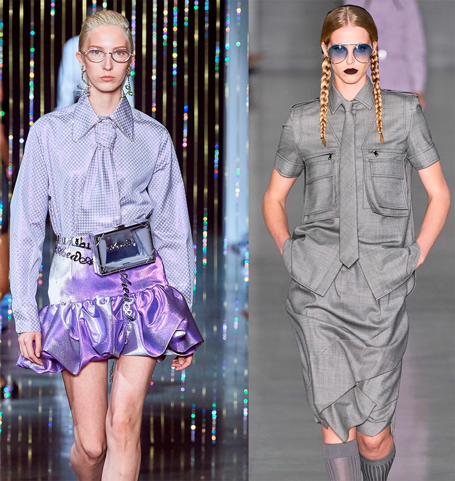 Au cours de la nouvelle saison, des costumes trois pièces ont été vus à plusieurs reprises sur le podium, c'est-à-dire avec l'ajout d'un gilet.Dans cette version, la cravate semble stricte et souligne le caractère commercial de la femme. Et même si elle n'est pas à la tête de l'entreprise, on sent tout de suite qu'il est inutile de se disputer avec une personne aussi spéciale.