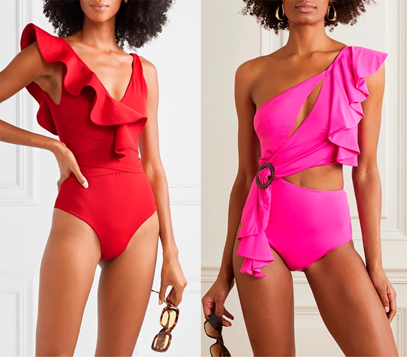 D'ailleurs, H&M a créé une collaboration avec Johanna Ortiz, qui comprend, entre autres, 2 maillots de bain lumineux. Ils combinent plusieurs tendances à la fois : corsage à une épaule, volants, imprimé à la mode.