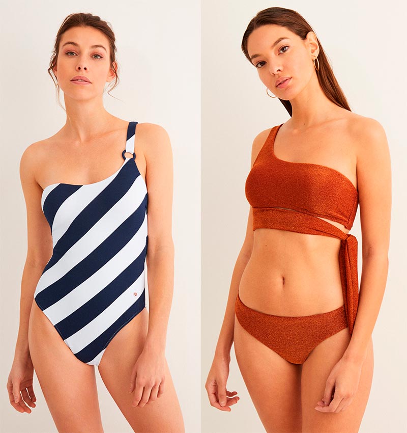De nombreuses marques ont adopté la tendance du corsage à une épaule. Il existe une bonne sélection de maillots de bain similaires dans la collection Women'secret et chez Oysho.