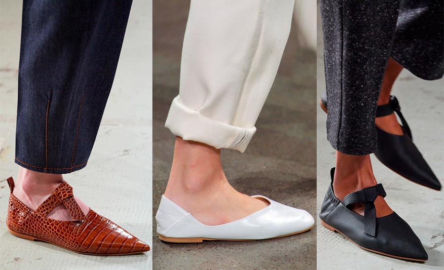 7. Ballerines. Les ballerines font désormais partie de la garde-robe de presque toutes les filles et sont associées à la féminité, au confort et à la commodité. Il est à noter que les ballerines au nez pointu et laconique sont à la mode cette année.