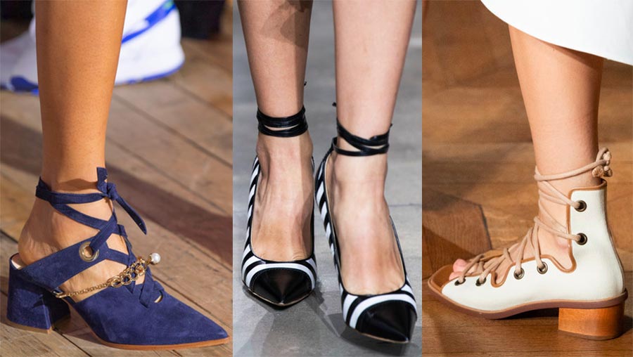9. Laçage. Les chaussures de style grec, où le laçage sert davantage d'élément décoratif et se concentre sur la cheville et la cheville, sont désormais également pertinentes. Les chaussures à bout pointu et à lacets sont très originales et élégantes sur la jambe, de telles chaussures peuvent être intégrées à n'importe quelle image à la mode, au quotidien comme en soirée.