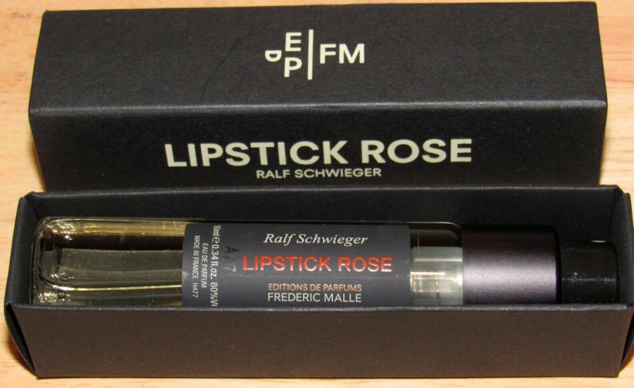 Parmi les premiers parfums de la maison de parfum Frederic Malle figurait Lipstick Rose. Ralf Schwieger a créé un parfum féminin unique qui associe des notes florales de rose et de violette à la douceur de la vanille, du pamplemousse pétillant, de l'iris, de la framboise et du musc blanc. Le parfum a été lancé en 2000.