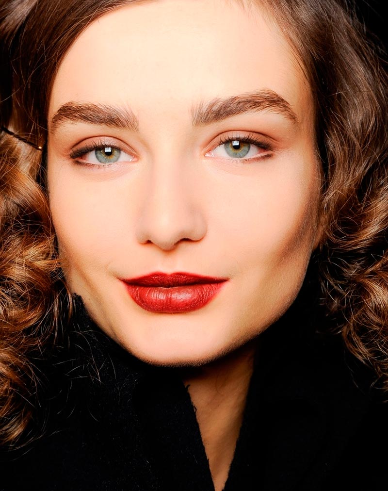 Comment faire?La couleur du rouge à lèvres foncé doit également être sélectionnée en fonction de votre type de couleur. Décidez d'une nuance et utilisez un crayon un demi-ton plus foncé ou assorti au rouge à lèvres (vous n'avez pas besoin d'un ton entier, aujourd'hui il aura l'air théâtral). Tracez vos lèvres autour du contour avec un crayon, estompez-le et appliquez du rouge à lèvres par-dessus. Il est préférable d'utiliser un pinceau pour une application plus précise, et pour que le rouge à lèvres ne s'étale pas.
