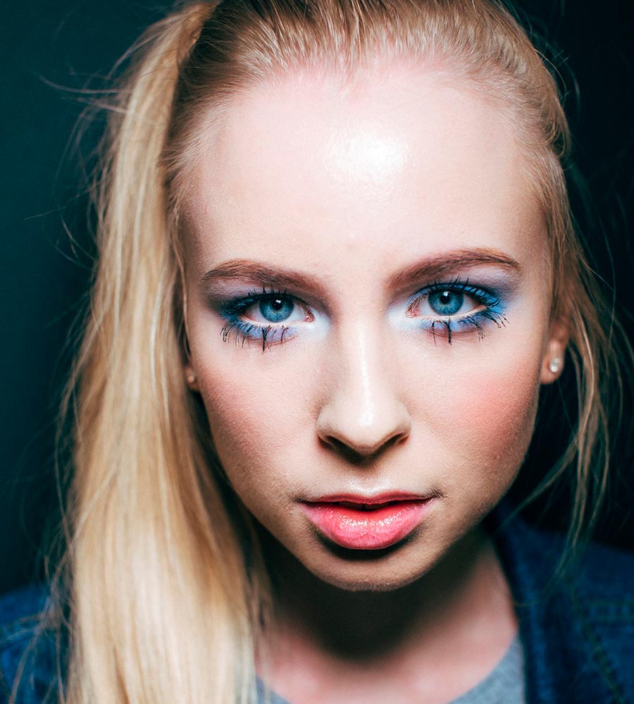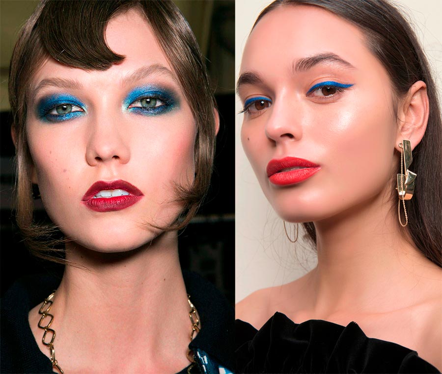 Comment faire?Les ombres à paupières bleues nécessitent une application et des choix de couleurs minutieux. Choisissez le bleu marine profond si vous êtes brune, le bleu clair si blonde, et pour les rousses, les nuances de bleu avec des touches verdâtres conviennent. Deux tons peuvent être utilisés, le plus foncé et le plus clair. Appliquez-les en conséquence : clair au coin interne de l'œil avec une transition au foncé à l'extérieur. Il est préférable d'apporter la paupière inférieure avec des ombres mates d'une teinte naturelle beige ou nude. Eh bien, les plus téméraires peuvent aussi peindre la paupière inférieure en bleu.