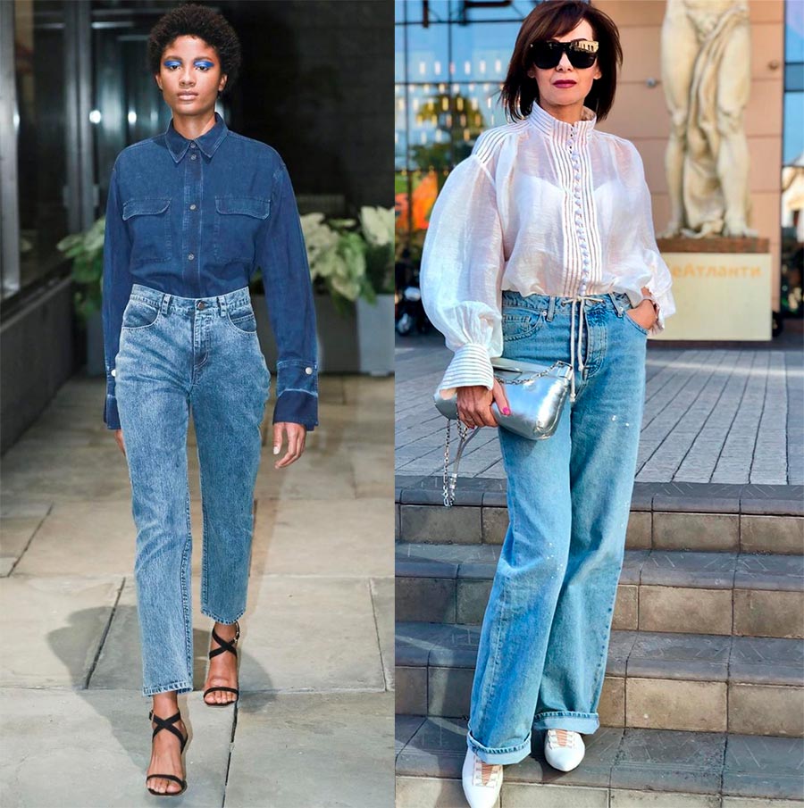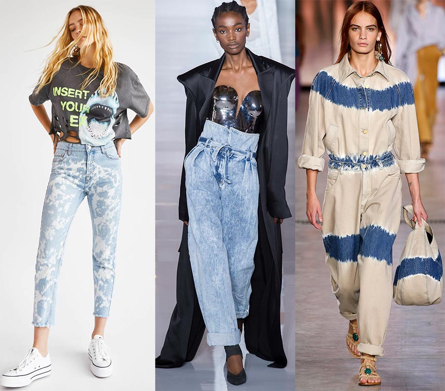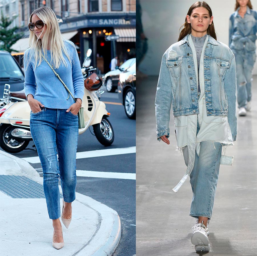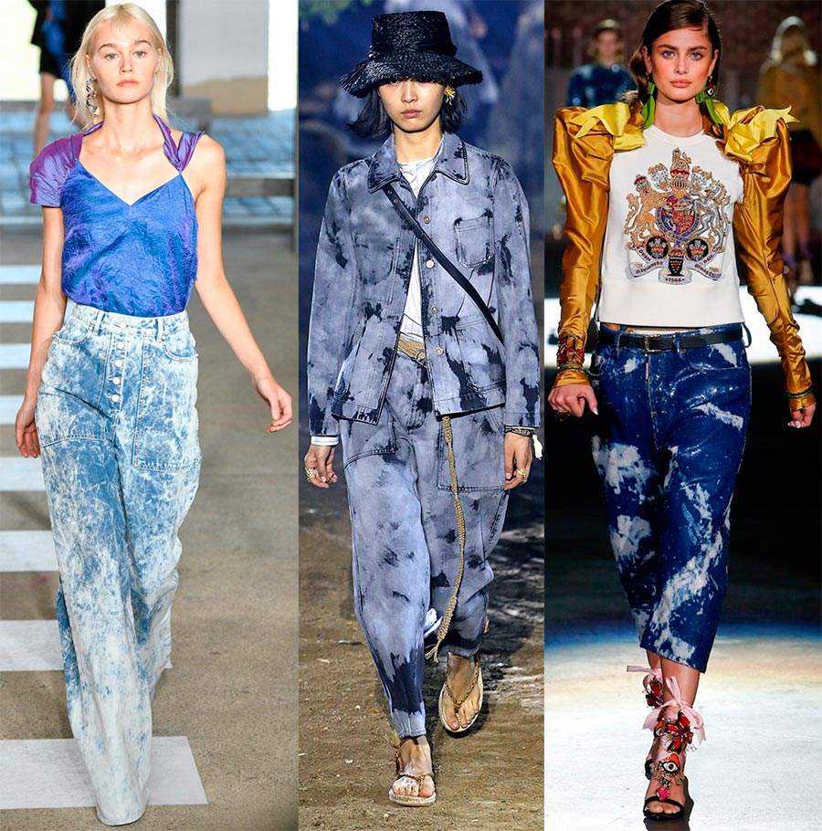 Dans le même temps, la couleur du denim peut aller de l'indigo classique au bleu clair, tandis que la créatrice Rachel Comey propose des boulettes en vert. Le style peut également être différent, l'essentiel étant les taches blanches et les taches (Balmain, Off-White).