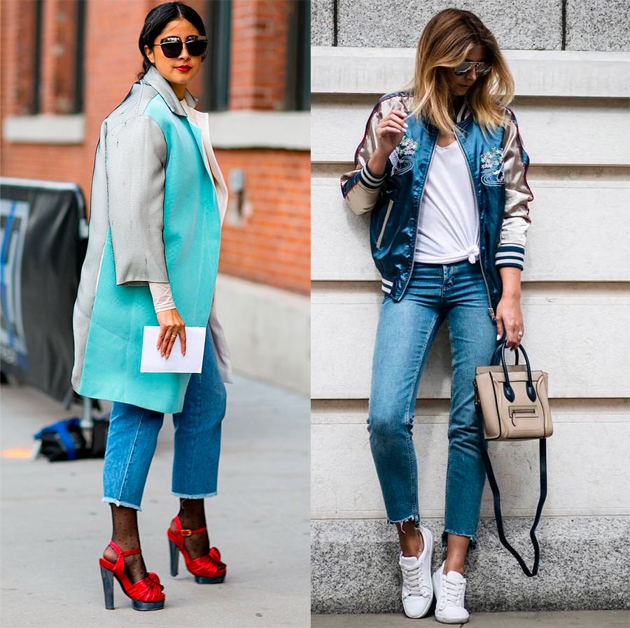 7/8 ou 3/4 - à vous de choisir. Plus le jean est court, mieux c'est de le porter les jours de printemps et d'été plus chauds et plus secs. Plus elles sont longues, mieux elles s'accorderont avec les bottes et bottines, ainsi qu'avec les bottes montantes.