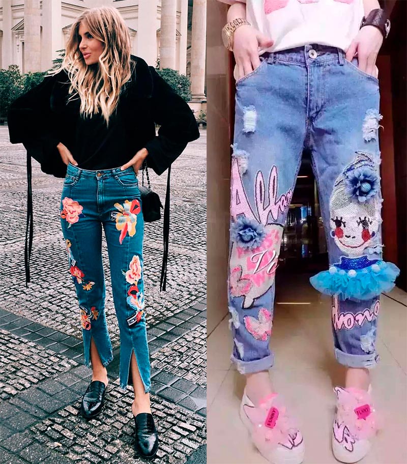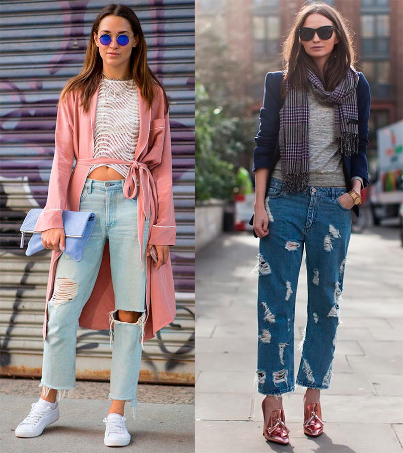 De tels modèles ajoutent de l'audace et de la facilité à l'image, mais il est peu probable qu'ils conviennent à un code vestimentaire de bureau - cela doit être compris. Mais lors d'une soirée ou d'une réunion entre amis, vous serez la plus à la mode en portant un jean avec des fils saillants, des patchs et des déchirures à la fois dans le dos et à l'avant des jambes.