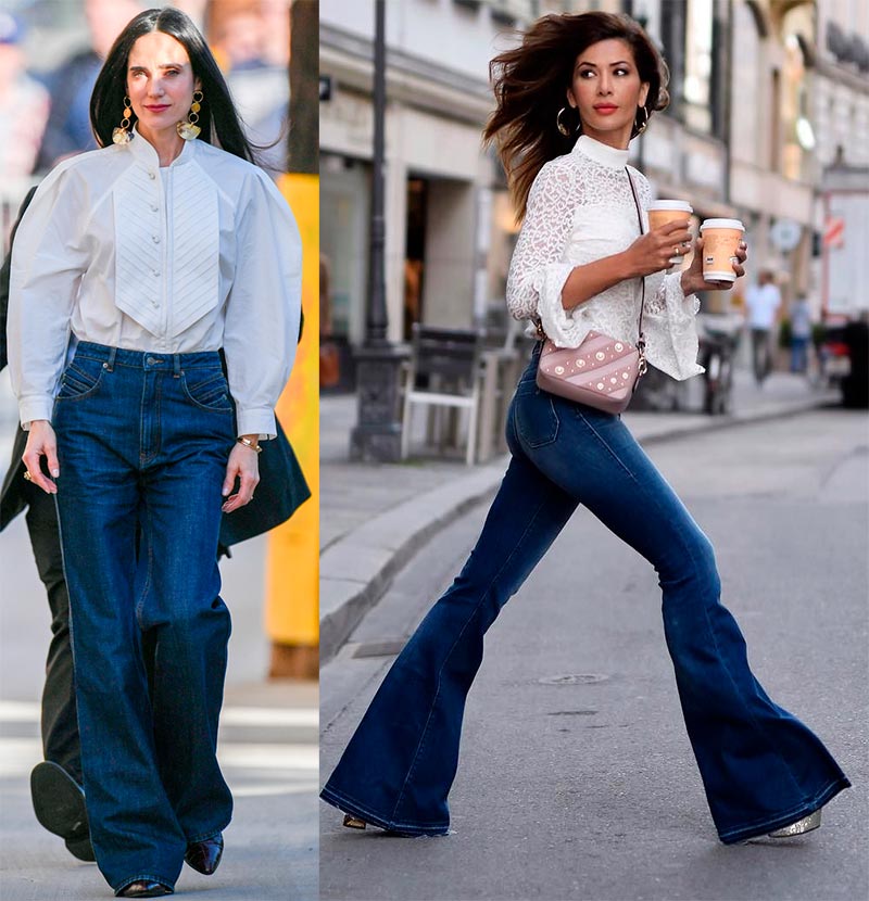Évasé à partir de la cuisse, évasé à partir du genou, évasé uniquement dans la moitié inférieure à partir du milieu du mollet - les options sont plus que suffisantes et vous pouvez toujours choisir la vôtre. Le jean évasé s'intègre parfaitement dans le style bohème, et le casual chic plus discret accueille également les modèles évasés.