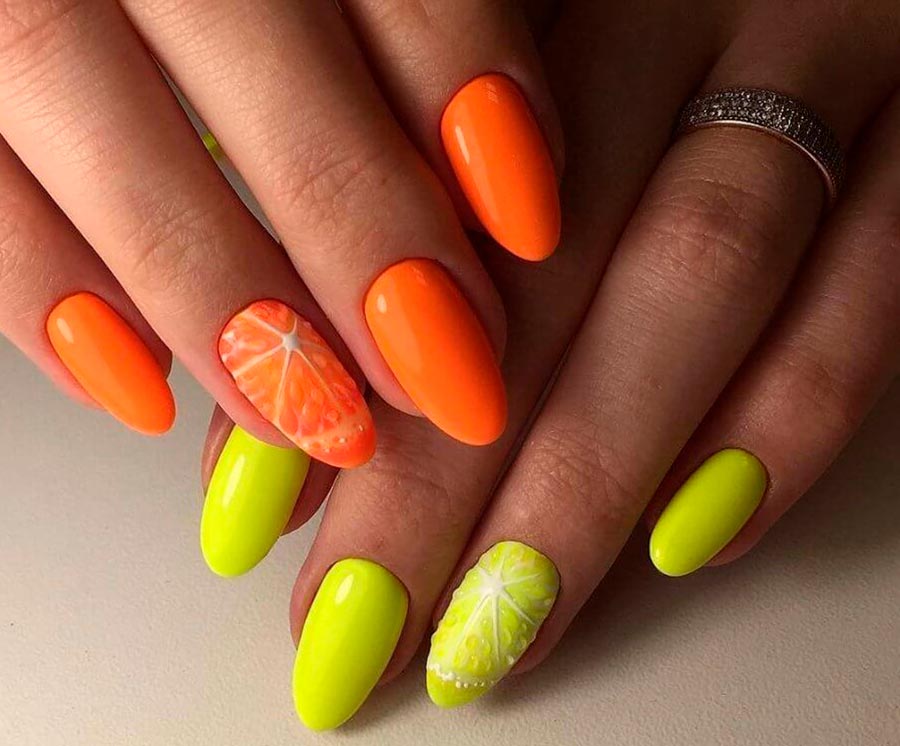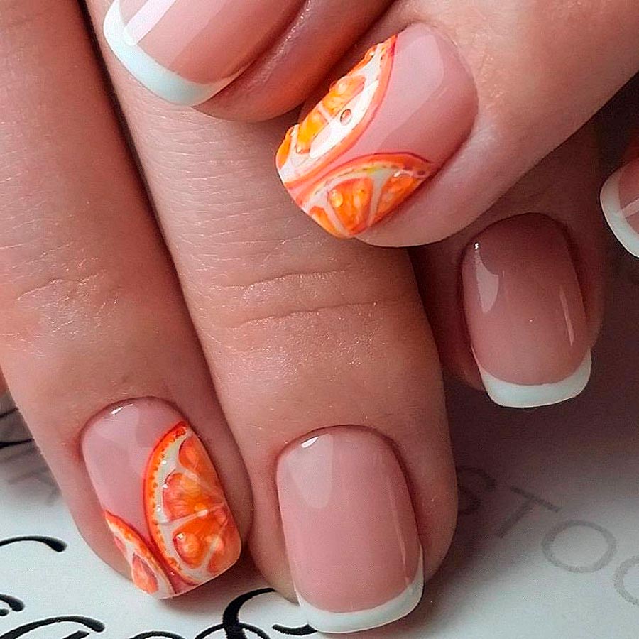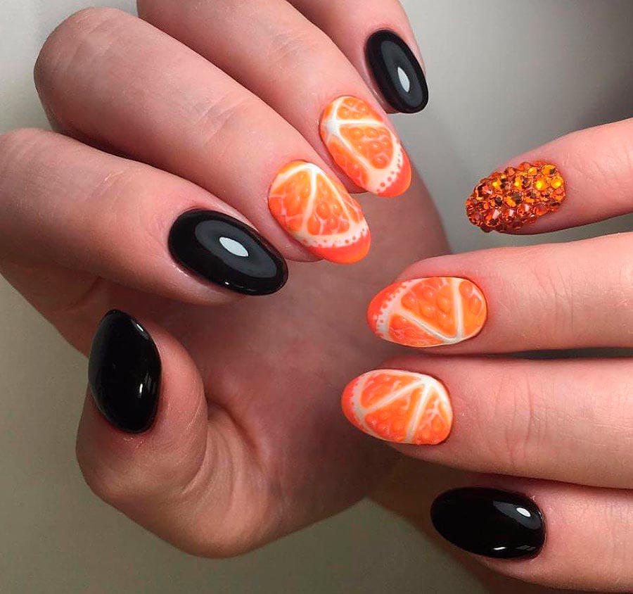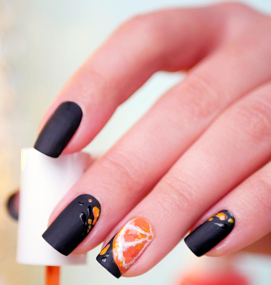 Les agrumes peuvent être sur nos tables non seulement en été, car ils sont exotiques et sont importés des pays chauds même en hiver. Mais c'est en été dans la manucure "agrumes" que vous pourrez incarner les couleurs les plus en vogue de 2026. Pour les oranges vifs, utilisez des nuances d'orange chaudes Orange Peel, Orange Tiger ou Saffron, pour des citrons juteux mélangez Cheddar et Sunlight, pour les limes choisissez Ciboulette ou Eden. Dessinez des mandarines sur une branche ou des tranches d'agrumes sur chaque ongle - votre imagination est illimitée.