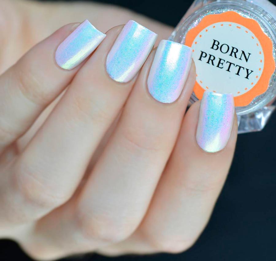 Les frictions et les poudres en 2026 seront incroyablement populaires. Ce sont des frottements miroir, qui sont appliqués sur les couleurs sombres saturées de la base et les rendent complètement métalliques, et des perles, nacrées, translucides et très délicates, qui sont appliquées aux couleurs claires des vernis et des vernis gel. Et c'est sur la couleur blanche que le frottement de nacre sera le plus beau.
