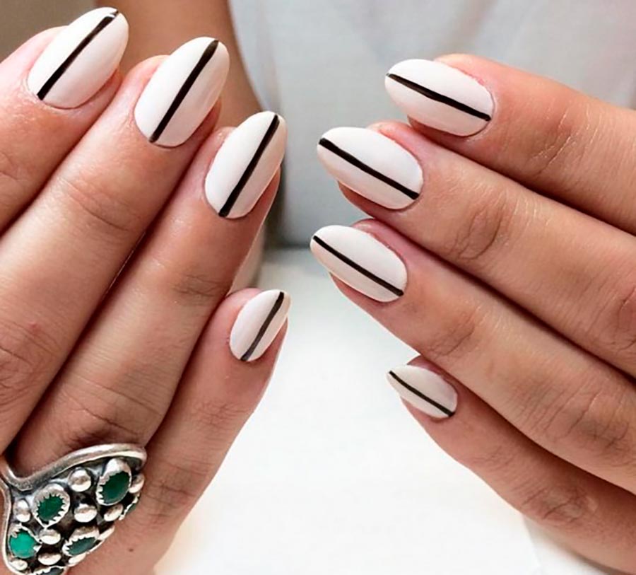Les options les plus réussies sont des rayures simples qui peuvent être placées verticalement, horizontalement ou en diagonale, ou se croisent, des cellules de différents styles, des points ou des pois, des triangles et d'autres formes, ainsi que des motifs géométriques complexes. Dans le nail art graphique, vous pouvez ajouter d'autres nuances au blanc, de préférence contrastées, ainsi que des paillettes, des paillettes, du papier d'aluminium, des pierres, des strass et bien d'autres éléments décoratifs.