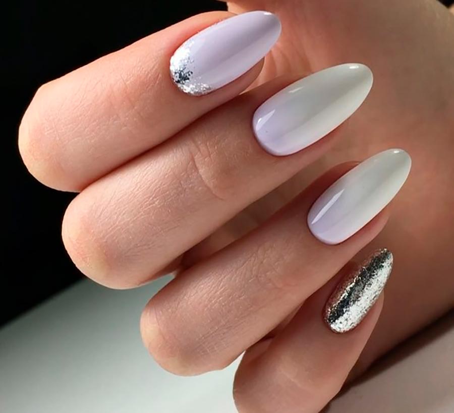 Comme nous l'avons dit plus haut dans le cas des taches de marbre, l'or et l'argent, ainsi que les paillettes d'autres nuances, peuvent vraiment rendre une manucure visuellement plus riche et plus statutaire. Et surtout si la combinaison de paillettes n'est pas avec du vernis coloré, mais avec du blanc neige. Les paillettes d'argent conviennent mieux à l'émail blanc neutre ou au vernis gel, mais si vous avez l'habitude de porter des bijoux en or ou en métal jaune, vous pouvez utiliser des paillettes d'or en toute sécurité.