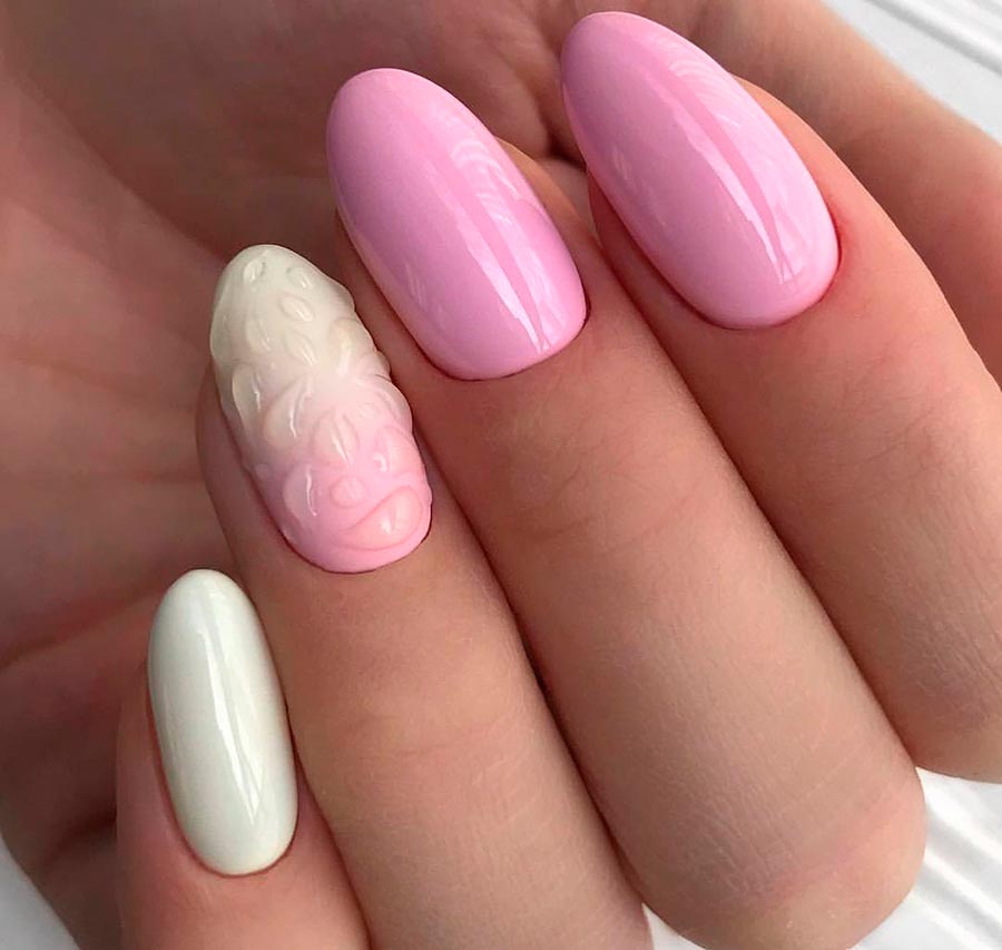 Une autre excellente combinaison de couleurs est le blanc avec des tons pastel. Le blanc a également fière allure avec des tons sombres saturés - noir, rouge, bleu foncé, rose vif, violet, etc. Mais une manucure, qui combine des tons blancs et pastels de rose clair, bleu, vert pâle, jaune, lavande, beige nude, sera particulièrement romantique, féminine et délicate.