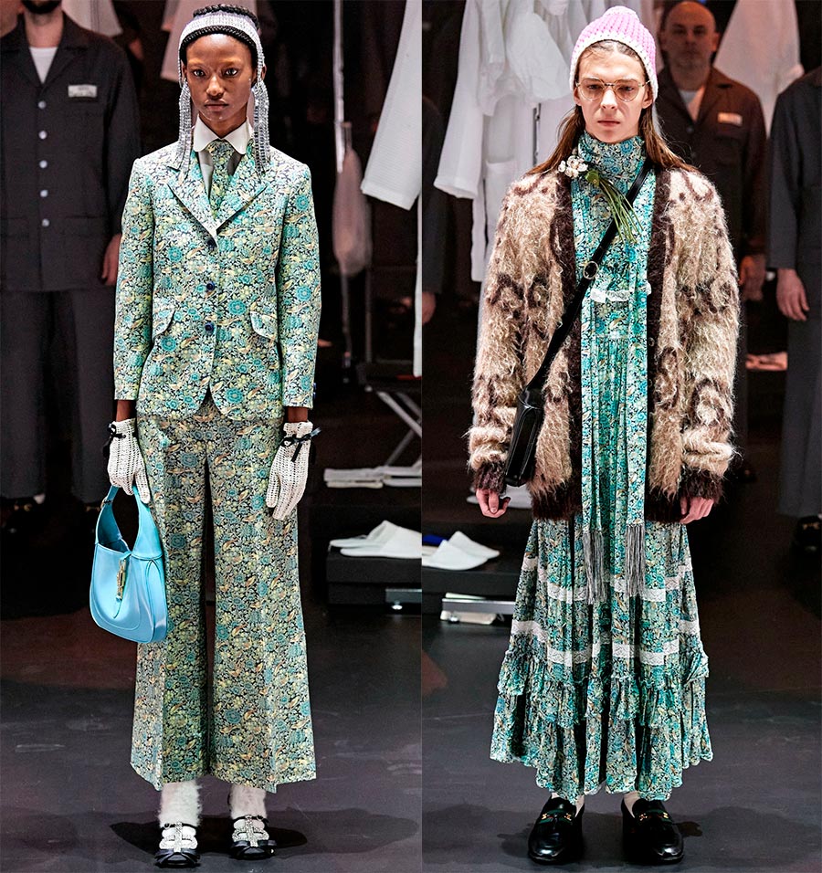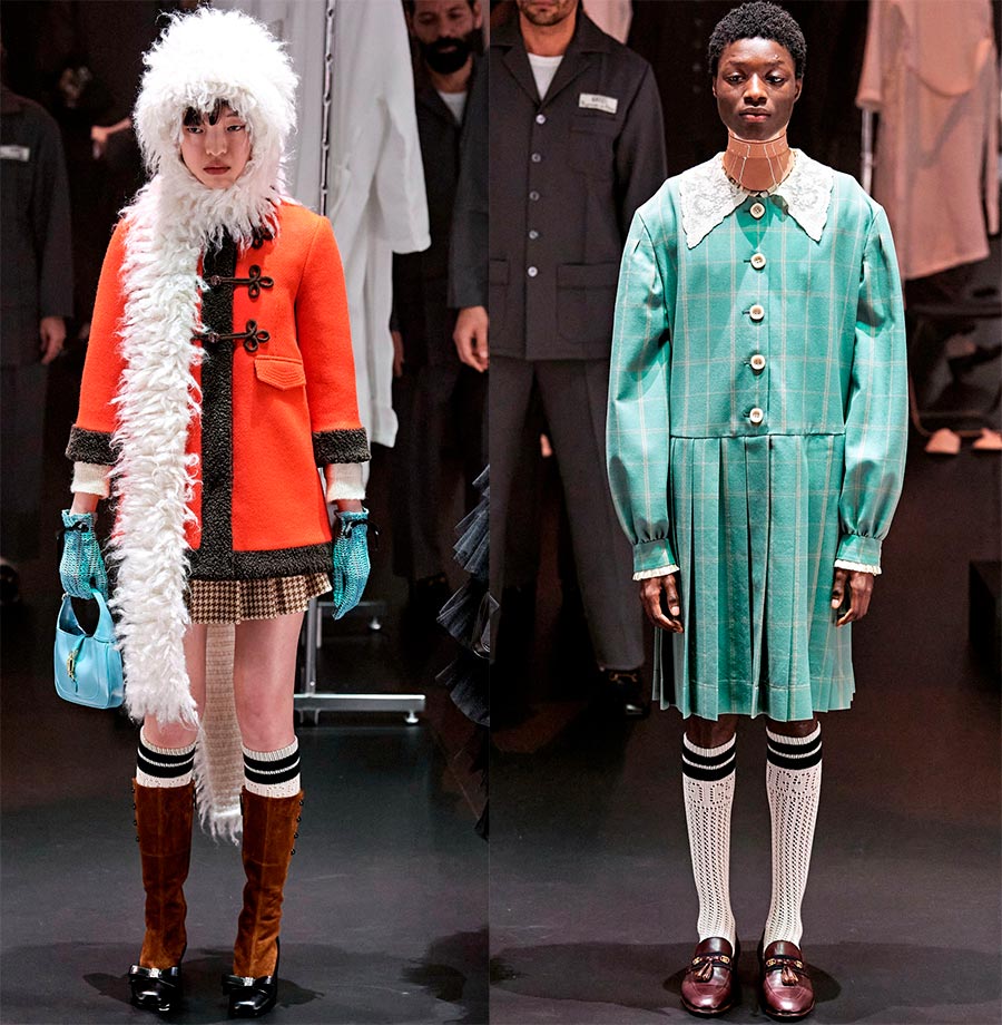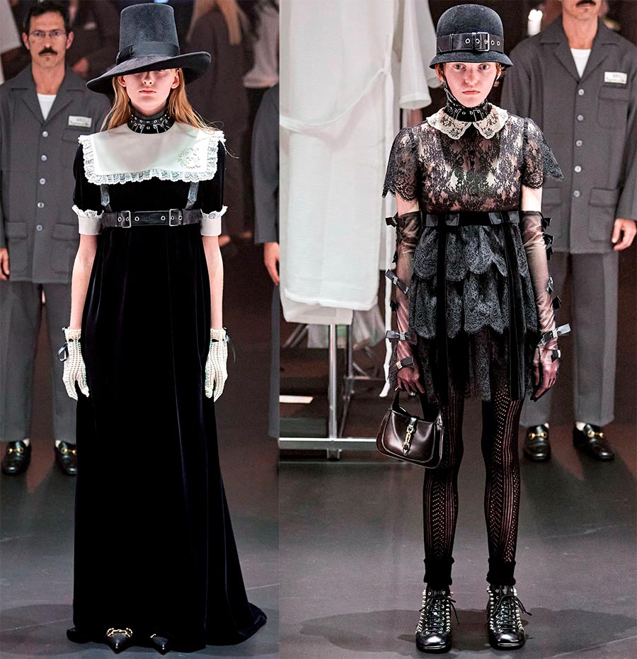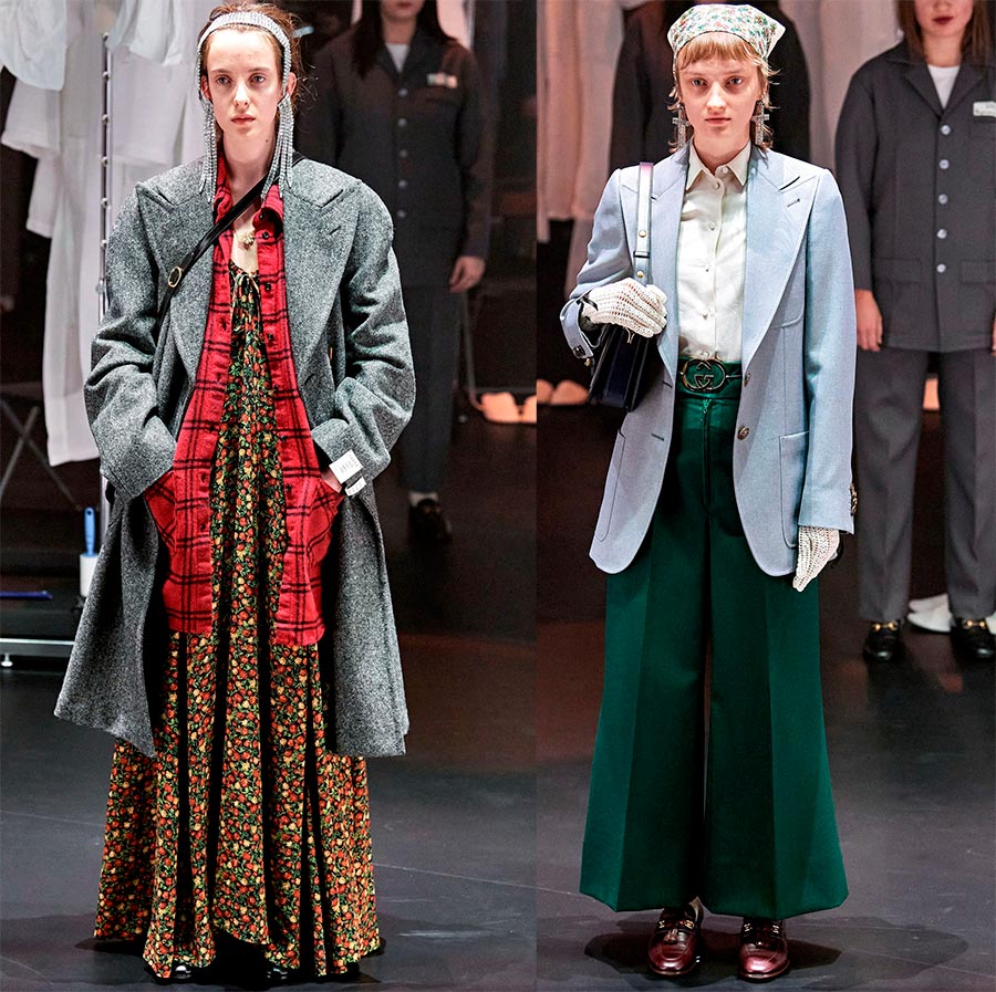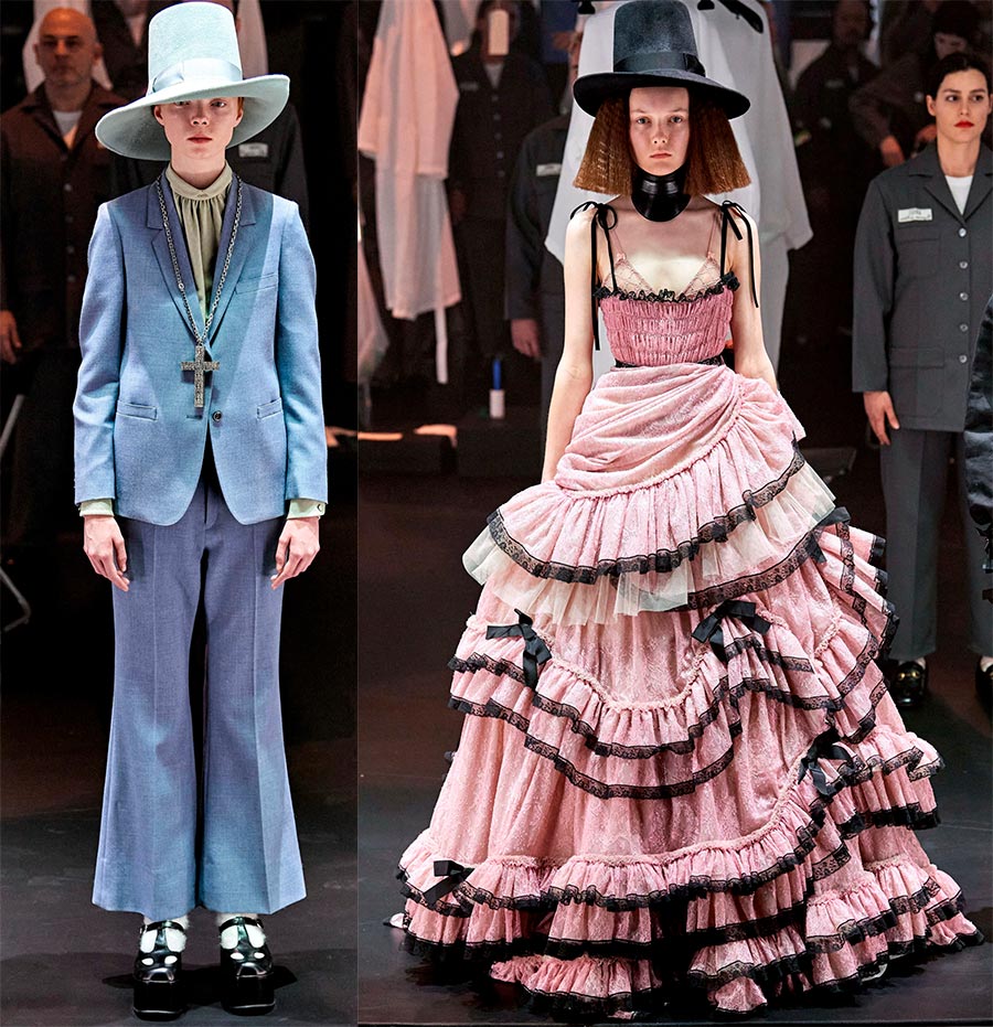 L'essentiel est que Gucci, sous la direction d'Alessandro Michele, ait atteint un nouveau niveau en termes de rentabilité et de popularité auprès des célébrités. Le designer est guidé par le principe - même si tout le monde n'aime pas mon travail, il ne laissera personne indifférent. De nombreux créateurs empruntent le style Gucci et l'incarnent dans leurs œuvres, bien qu'il s'agisse d'une mode différente. Si Gucci a une mode sophistiquée pour l'aristocratie, alors certains imitateurs ont une mode pour la classe ouvrière.