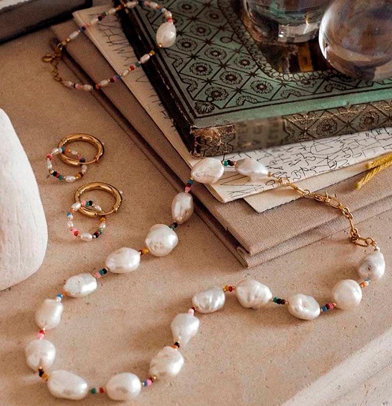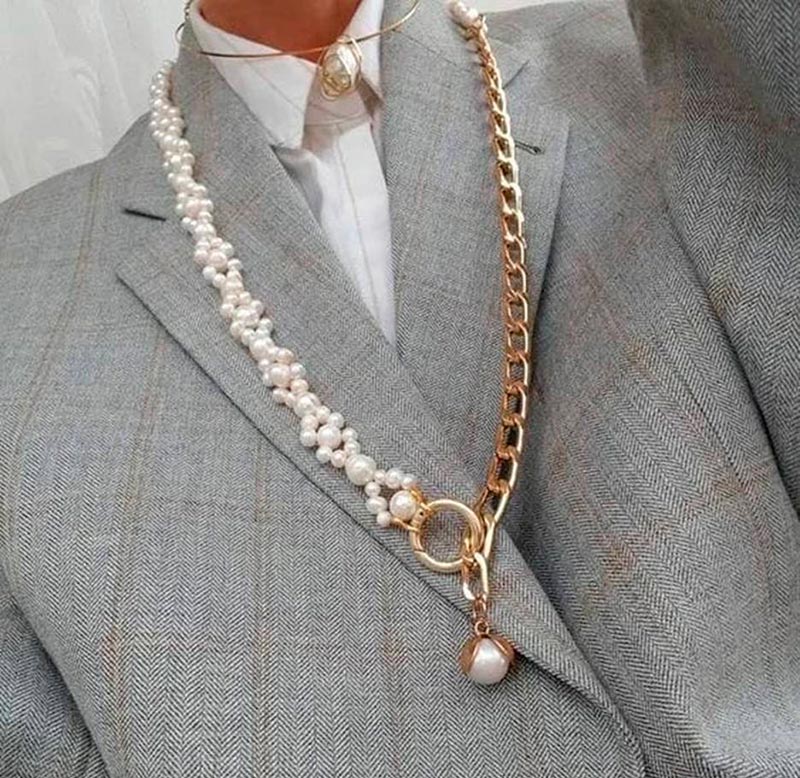 Les perles mélangées avec des perles dorées ou colorées ont l'air neuves et originales. Convient pour les looks très laconiques, pour ceux qui n'aiment pas les gros bijoux, ou vice versa - pour les ensembles très accentués où des détails supplémentaires ne sont pas nécessaires.