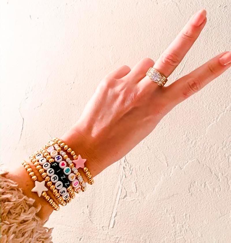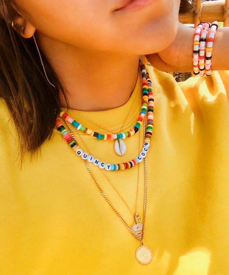 Perles, coquillages, or, perles - nous mélangeons tout, le plus sera le mieux ! Des accessoires "bébé" tendance, des bracelets meilleurs amis, ou un prénom en perles. Vous pouvez acheter un ensemble prêt à l'emploi ou combiner plusieurs options. A titre d'exemple - un bracelet de perles à trois couches avec des bijoux en or. Cette tendance est parfaite pour les looks bohème décontractés ou décontractés.