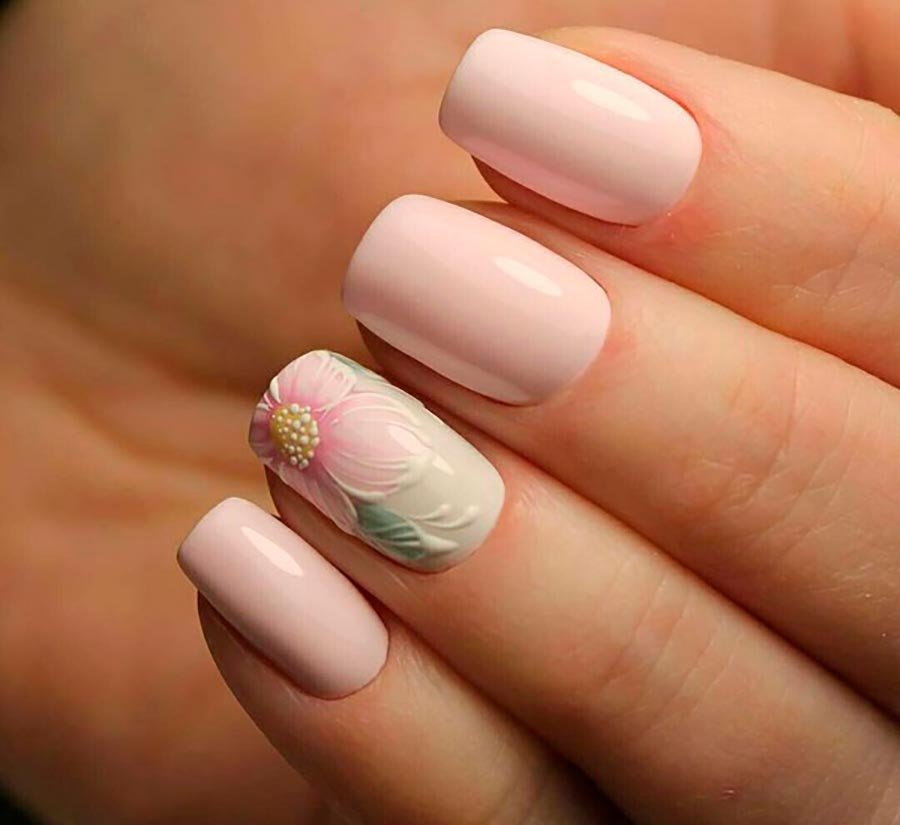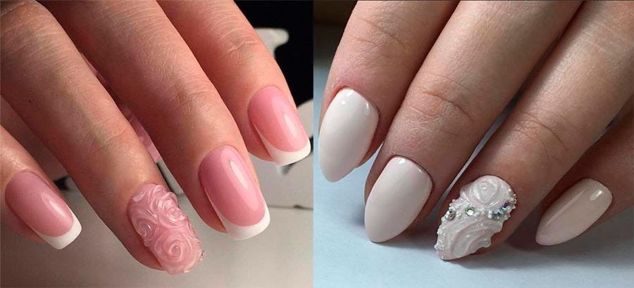 Pour la sculpture, on utilise généralement de la poudre acrylique, qui est mélangée à un liquide (liquide), formant une pâte. Avec un pinceau fin, vous pouvez créer des effets 3D incroyables et même des sculptures entières. Certaines personnes utilisent des poudres et des poussières spéciales avec des textures volumineuses pour les motifs volumétriques et les ornements. Le dessin le plus populaire pour les mariées est une fleur, mais vous pouvez dessiner tout ce que vous voulez si vous le souhaitez.