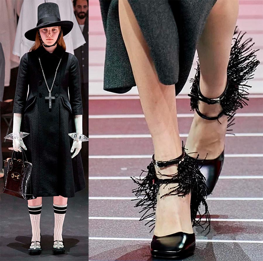 Les plus belles versions des collections Prada, Burberry et Céline. Et n'oubliez pas de porter des chaussettes ou des mi-bas avec eux. Je vais révéler une astuce stylée très cool - des chaussures et des chaussettes contrastées.