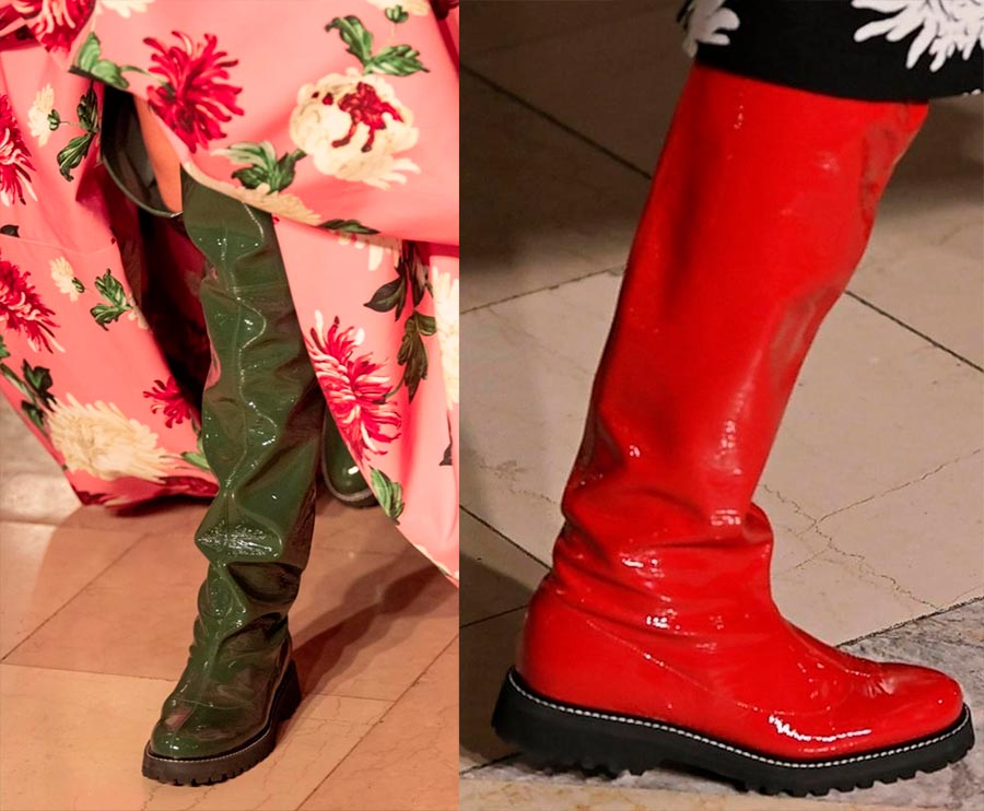 Pour la fin de l'automne, les créateurs proposent différentes options de bottes : bottes, bas, bottes pour cavaliers. De plus, à la fois en cuir verni et en daim ordinaire, sous un reptile et avec un décor en peau de mouton. J'ai déjà écrit sur la couleur.
