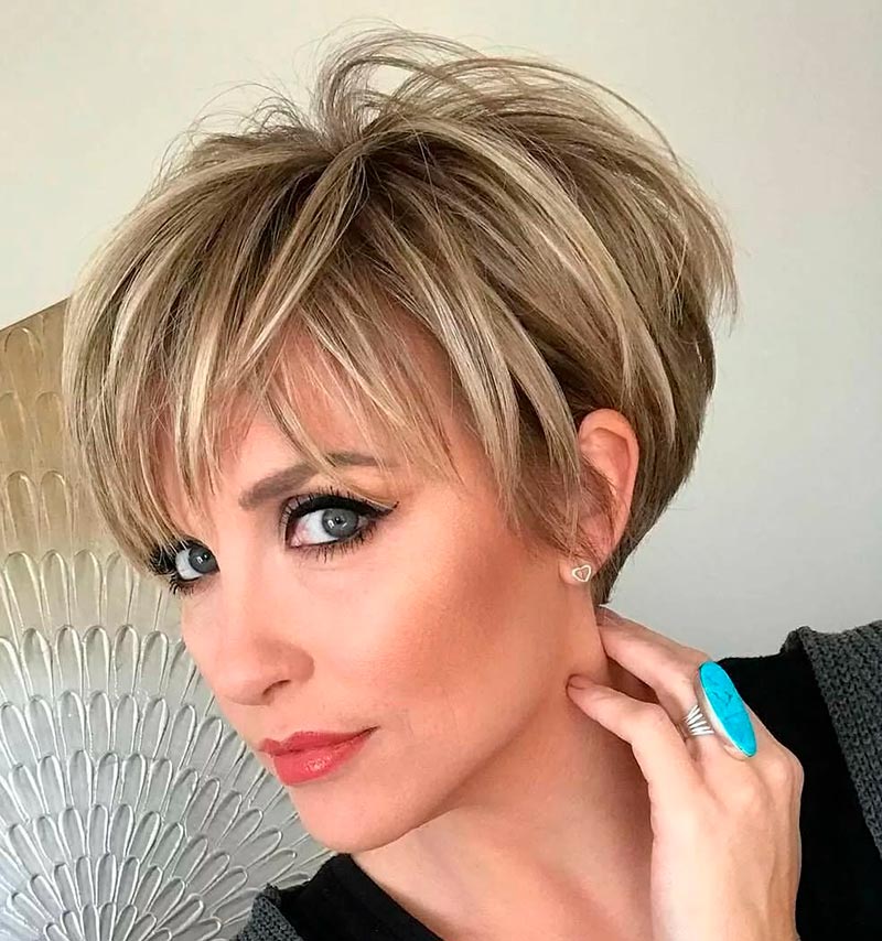 La meilleure solution que les experts conseillent est de changer de coupe de cheveux ou de coiffure. Les cheveux trop longs à 40 ans peuvent paraître bâclés, il n'y aura pas du tout de volume à la racine. Un bon carré aux épaules ou une coupe courte de lutin peut radicalement changer votre look pour le mieux. Du volume apparaîtra en raison du fait que les cheveux sont devenus plus clairs et il sera facile et simple de coiffer de telles coiffures. Vous pouvez également reprendre la coloration avec des mèches de plusieurs teintes claires, ce qui créera des débordements de couleur et de volume visuel.