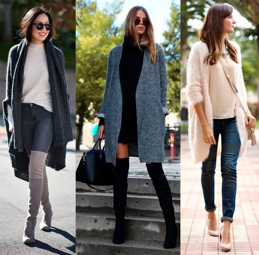 Les cardigans doux à la taille ont fière allure. Plus le tissu est fin, meilleure sera la coupe ajustée. Si le cardigan est fait de tissu de manteau épais, de tweed, de tapisserie, il est préférable de privilégier l'option coupe droite ou oversize. Ces modèles masqueront tous les défauts de la silhouette et s'intégreront bien dans différents looks.