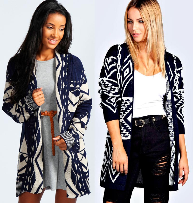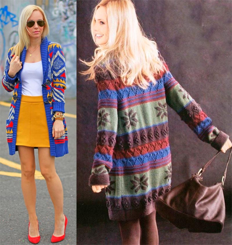 Les concepteurs ont également proposé des cardigans plus courts - juste en dessous de la cuisse. Mais dans ce cas, ils doivent être volumineux, de préférence en grosse maille, avec des volants ou des volants, ainsi qu'avec des manches "chauve-souris" ou des manches volumineuses avec des bouffées. Ces modèles seront confortables même par temps froid.