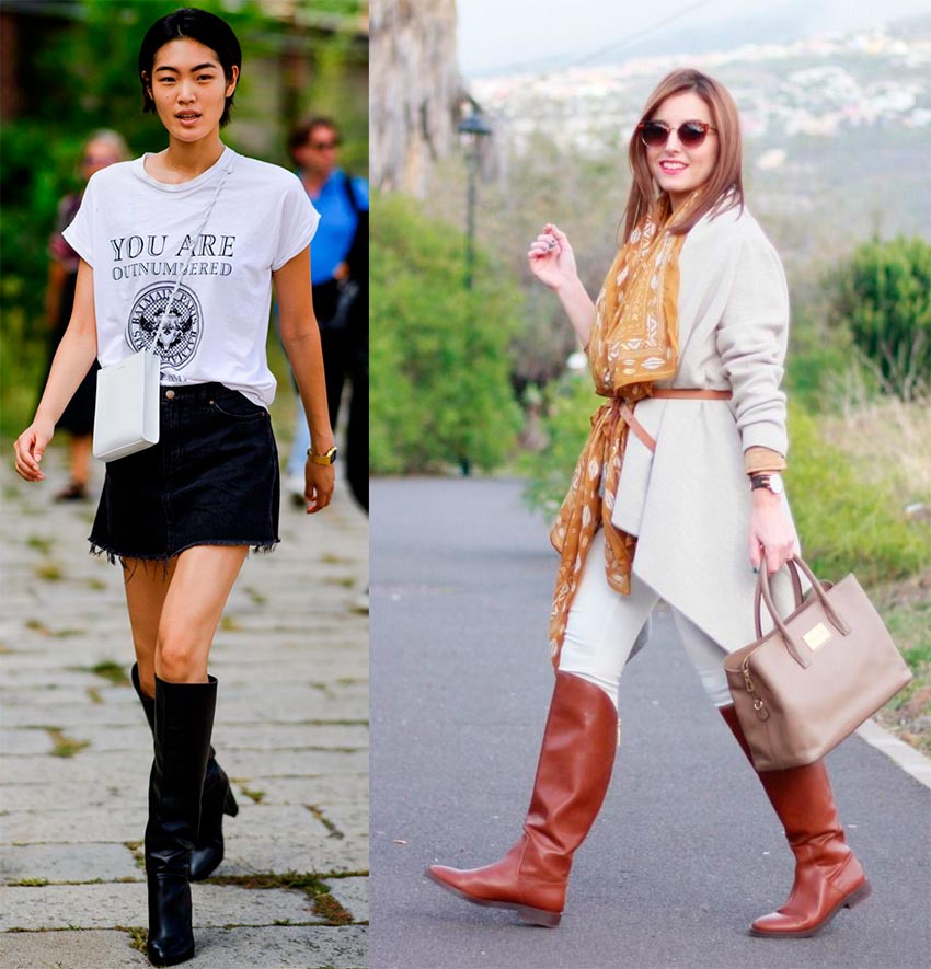 Si vous préférez quelque chose de plus discret et confortable, choisissez des cuissardes à quelques centimètres au-dessus du genou, des couleurs monochromes calmes, en cuir ou en daim, avec des talons bas ou pas de talons du tout. Comme Céline et Givenchy sont une excellente option pour tous les jours, qui s'intégrera même dans un look professionnel. Portez des bottes au genou avec des robes et des jupes courtes (ou jusqu'aux genoux), des leggings moulants et des pulls extra-longs.