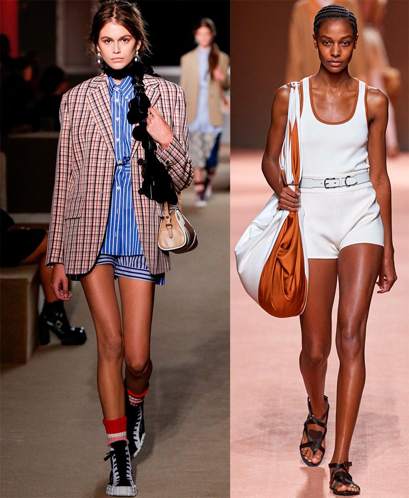 Faites attention aux sacs souples arrondis pour lisser l'angularité de la silhouette, choisissez des pochettes à la mode que les créateurs proposent cette saison, des cabas ou des cabas. Je recommande de le porter sur les hanches et de préférence dans une couleur similaire à la couleur du bas. Un sac ceinture est possible, mais choisissez ensuite une silhouette ample de vêtements pour créer l'illusion d'une figure en X.
