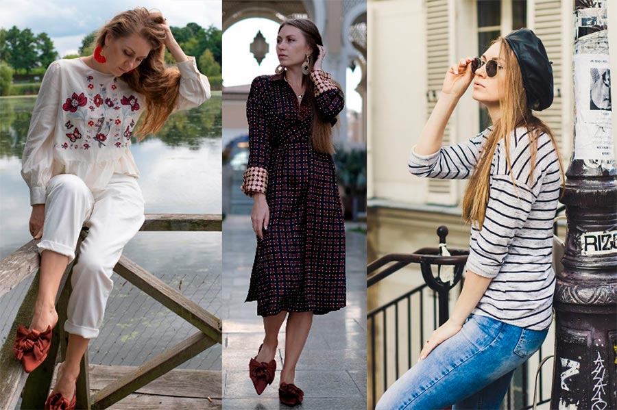 Puis un jeu fou de villes et d'images. Un gilet rayé fait aussi voyager à Paris, tandis que les robes de palais et les "chaussures de maison" - mules les emmènent à Dubaï... Je voulais m'intégrer dans la ville, ressentir son énergie, être "à moi" partout. Je l'ai pris comme un défi de mode, qui souvent, dans mon cas, se limitait à une valise. Mais l'inspiration était si forte que j'étais prêt à enfiler 3 looks à la fois s'ils ne rentraient pas dans une valise.