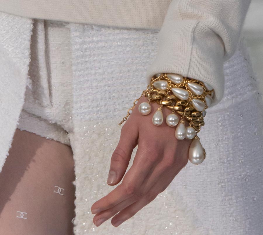 Au cours des dernières saisons, des perles ont été mélangées dans des bijoux avec du métal, mais cette saison, les bijoux sont fabriqués strictement à partir de perles de nacre de la forme correcte, le jeu n'est autorisé qu'avec leurs tailles. Prabal Gurung présente des boucles d'oreilles asymétriques en perles, Marc Jacobs un ensemble soigné de tour de cou et de boucles d'oreilles miniatures.