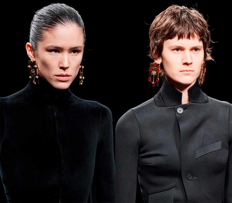 Si vous souhaitez acheter un bijou qui ne se répétera pas, alors les boucles d'oreilles sphériques, comme celles de la marque Dries Van Noten, seront le bon choix. Les boucles d'oreilles boule ne seront pas une tendance lumineuse, c'est une micro tendance et une idée pour un look lumineux. Et Altuzarra présente de petites boucles d'oreilles rondes qui trouveront leur place dans la boîte à bijoux de chaque femme.