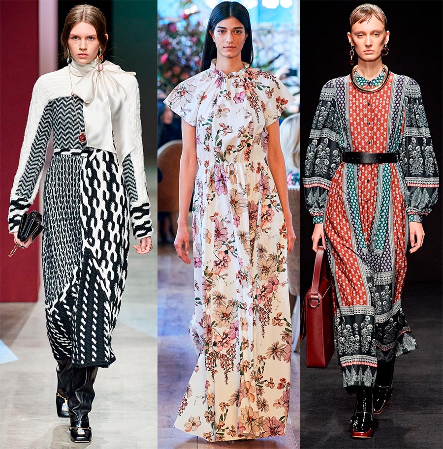 Rester imprimés floraux, strip, op-art, patchwork et mix d'imprimés. La combinaison de différents imprimés est impressionnante, surtout si des nuances similaires y sont répétées.