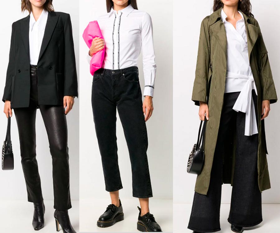 Si les règles le permettent, combinez un chemisier blanc avec un pantalon et une jupe en cuir, un jean noir et une robe d'été.