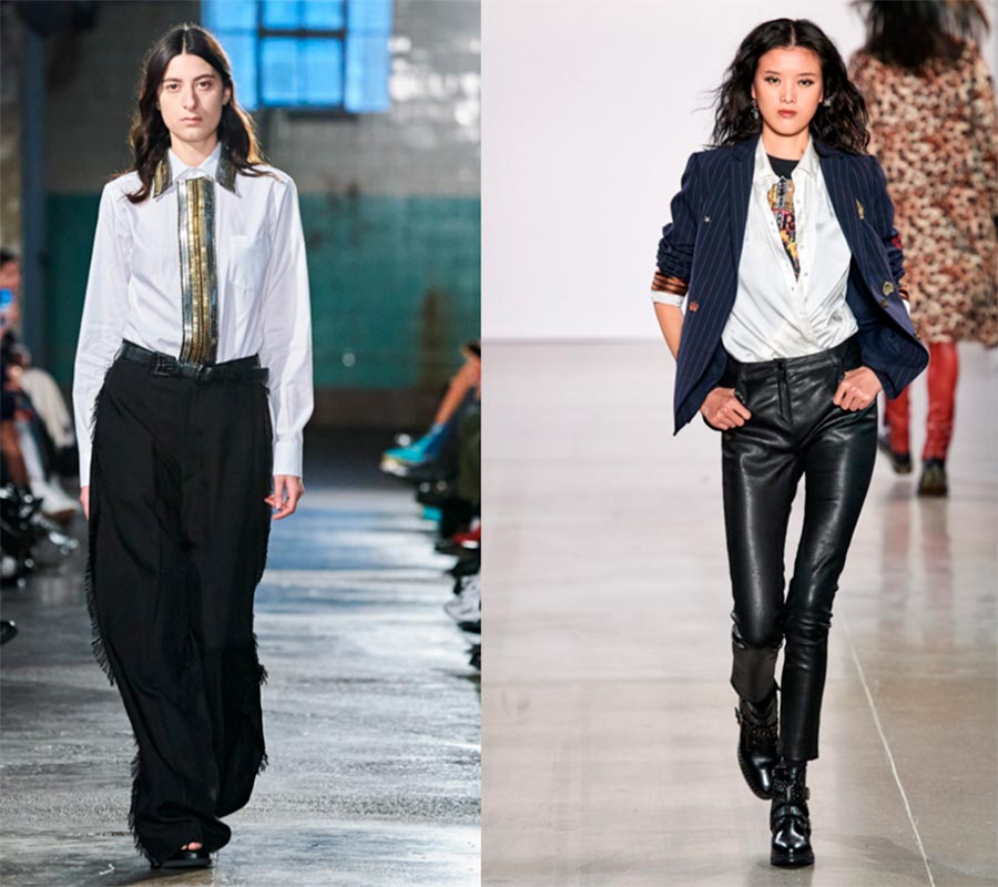 S'il y a un code vestimentaire au travail, alors je conseillerais, avec une chemise classique, d'avoir plusieurs chemisiers d'accent dans votre garde-robe, par exemple, avec un nœud ou un volant sur le devant et de véritables manches volumineuses.